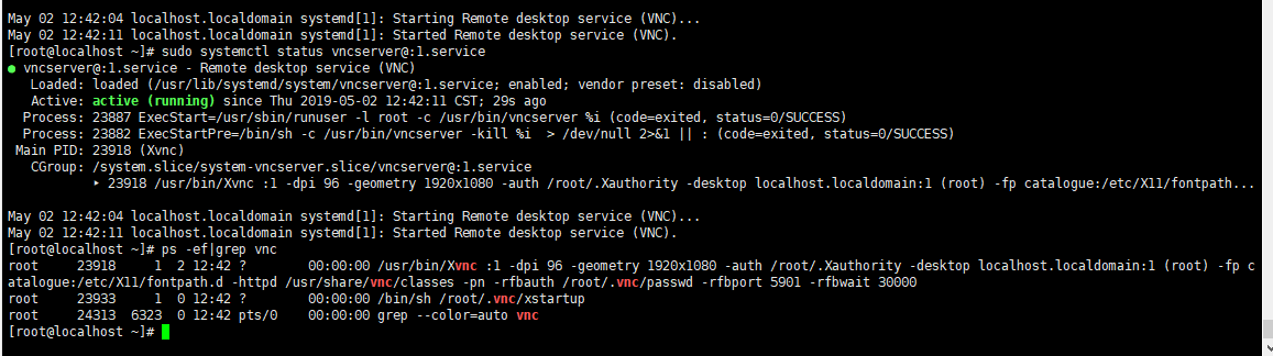 进行安装。昨天由于没有安装xwindow环境,vncserver服务一直启动不起来。今天参考这篇文章安装了xfce。服务成功启动。