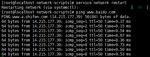 重启网络配置,ping百度域名;出现以下界面,说明网络已经配置成功