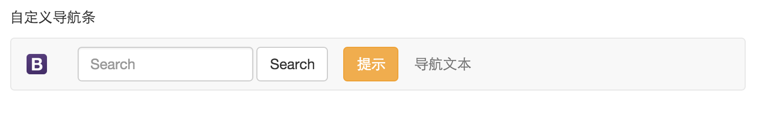 除了默认的导航栏组件,Bootstrap中还支持自定义导航条,使用navbar类可以创建导航条容器,其内可以布局图标,文本,按钮和表单等,示例如下: