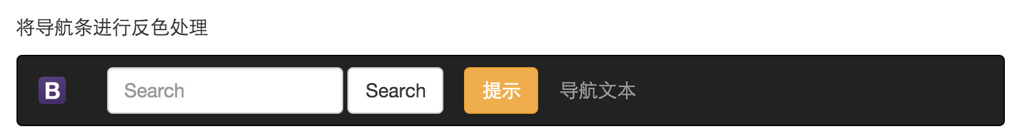 使用navbar-inverse类可以将导航条进行反色处理,示例如下: