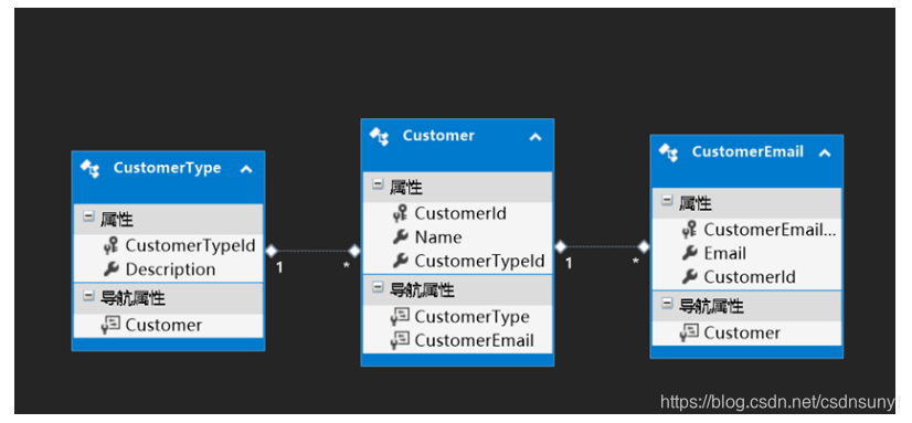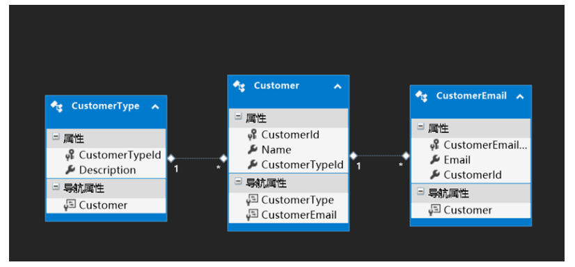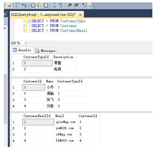 下面以客户类型、客户和客户邮件三个实体之间的关系来讲解两种加载方式。