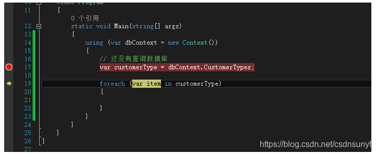 这就是EF的延迟加载技术,只有在数据真正用到的时候才会去数据库中查询。