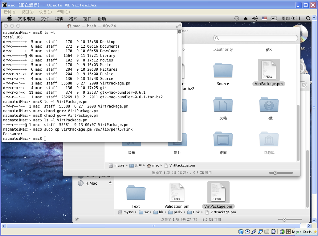 因为不是超级权限,不能保存。于是我在Finder中将“/sw/lib/perl5/Fink/VirtPackage.pm”复制到home目录。