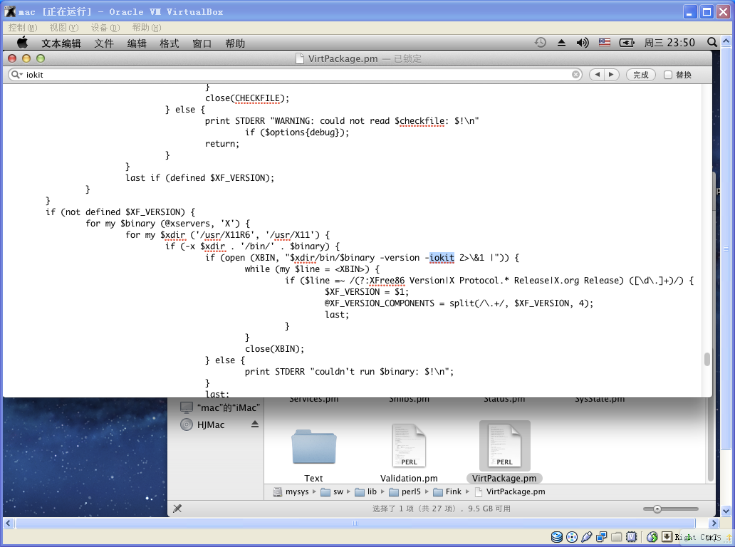在文本编辑器中打开home目录下的VirtPackage.pm,删除“-iokit”,并保存。