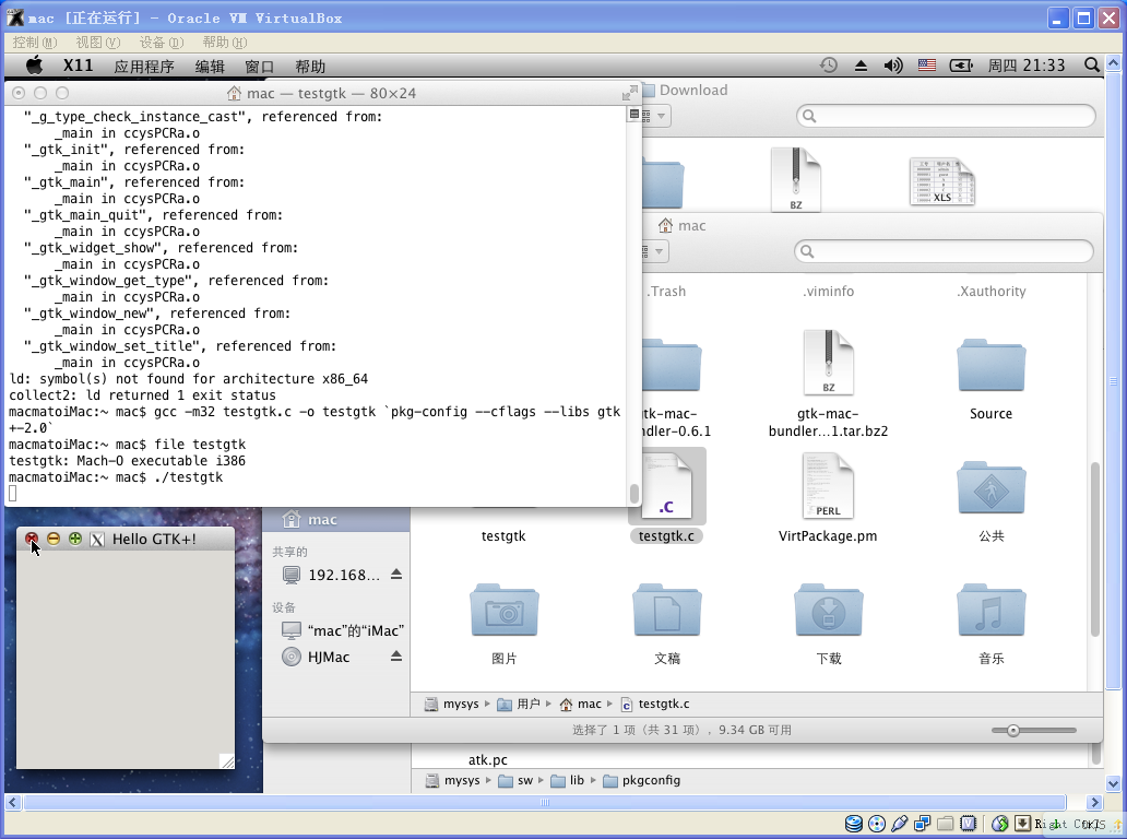 macmatoiMac:~ mac$ gcc -m32 testgtk.c -o testgtk `pkg-config --cflags --libs gtk+-2.0`