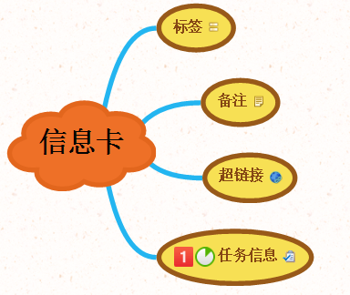 信息卡的主要功能就是显现或隐藏导图中主题信息的内容,以下图为例,导图中包含标签、备注等导图元素。