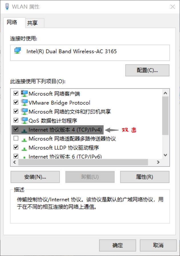 ▶ 在网络属性窗口中双击 “Internet 协议版本4 (TCP / IPv4)”。
