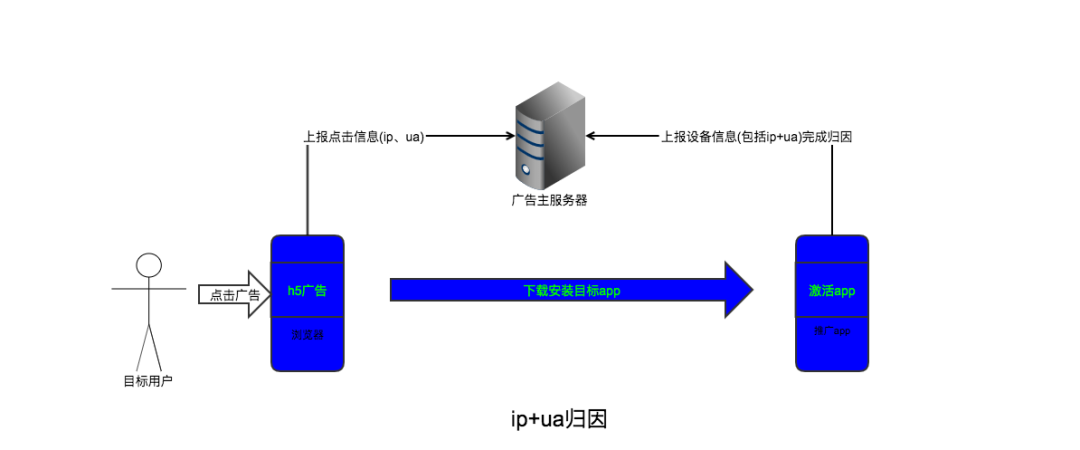 IP+UA 是指通过将用户点击广告时的 IP、User-Agent(简称 UA,用来提取用户的操作系统、版本号、手机型号等信息)信息与激活时的 IP、UA 进行关联匹配实现归因分析,一般来说使用短链来收集这两个信息,好处是用户友好、方便管理、方便信息收集和设置。