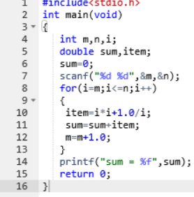 2.我和乙同学都是定义了i,m,n为整型变量,sum,item为双精度浮点型变量,甲同学则是定义m,n为整型变量,sum=0.0为双精度浮点型变量。