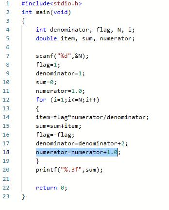 数据表达:用了item, sum, numerator三个变量,是double型变量。
