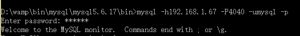 mysql -h “proxy的IP” -P 4040 -u username -p password
