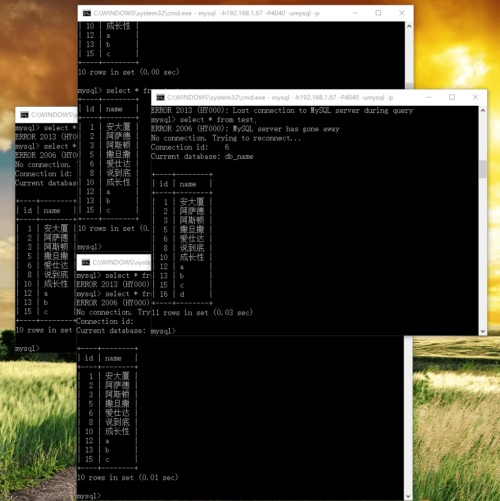再在67和83服务器上select * from test;