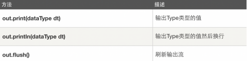 下表列出了我们将会用来输出boolean,char,int,double,String,object等类型数据的重要方法:rId4