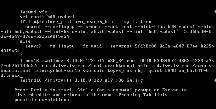 centos7/rhel7进入单用户方式和重置密码方式发生了较大变化,GRUB由b引导变成了ctrl+x引导。