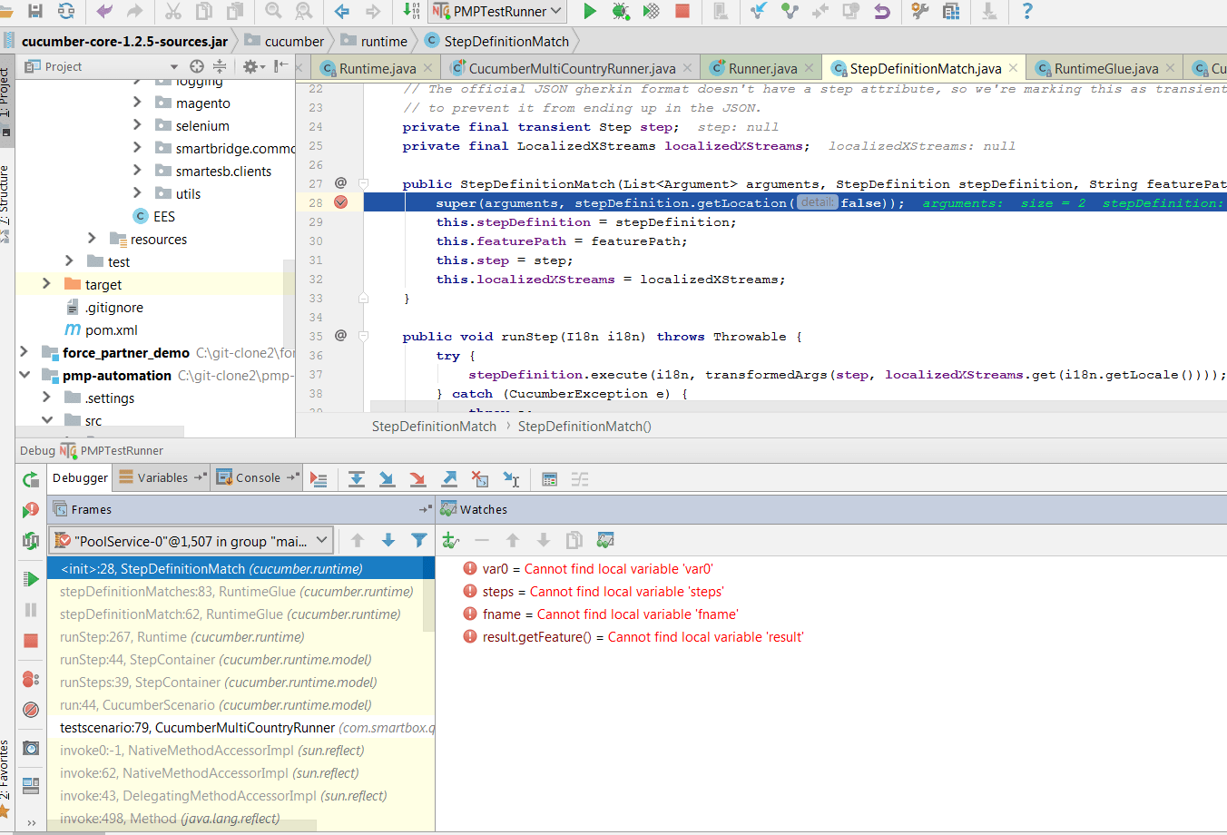 I can see StepDefinitionMatch class gets the steps, but I am not sure how can I access the steps at runtime. Any help? Adding a snapshot of the call stack if that helps.