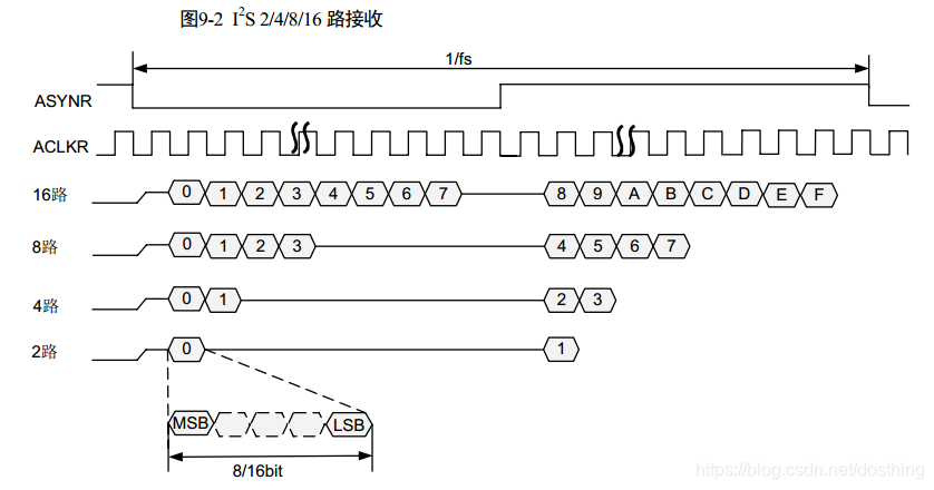 根据笔者的经验,海思音频模块硬件实现方式有两种,一种是将音频芯片集成到芯片内部,作为片上资源使用,另一种是外接音频芯片方式,如wm9874。这两种接法大同小异,与音频芯片控制指令数据交互是由I2C实现,而音频数据交互则是由I2S或者PCM来实现。软件开发需要注意的是音频采样率设置、采样数据位宽,8位或者16位,不同的云语音识别平台对音频采样率、位宽都有要求,不过比较通用的是16khz采样、16位数据宽度、pcm音频格式。下图是海思CPU与音频芯片用I2S或PCM方式进行数据交互的示意图,可见PCM方式只有单声道,而没有多声道立体声的概念。